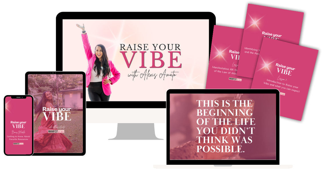 Raise your Vibe is broken down into 4 Weeks of 30+ modules and 10+ additional bonus modules + masterclasses taught by Alexis that you can take at your own pace, in your time, and from wherever you want!